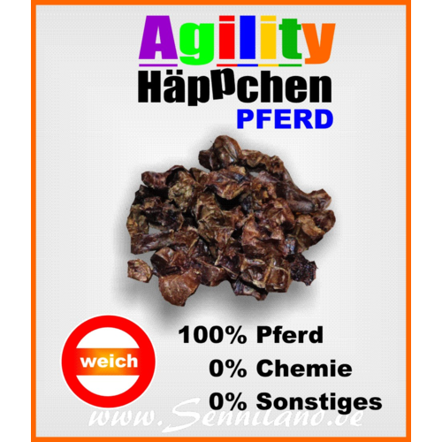 Gemacht sind diese aus Pferdelunge, die vor dem Trocknen in kleine Stücken (ca. 1 cm) zerteilt wird. Einzigartig im Geschmack und Hammer in der Wirkung :-). Unsere Agility-Häppchen sind ein Naturprodukt, so das das Volumen varrieren kann, aber das Tütchen ist immer voll ;-)